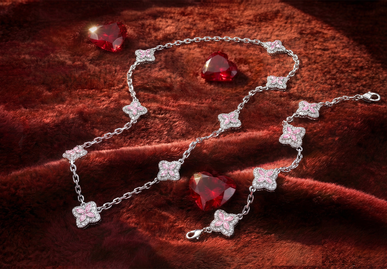 Iced Luminous Clover Chain & Bracelet Set - White Diamond