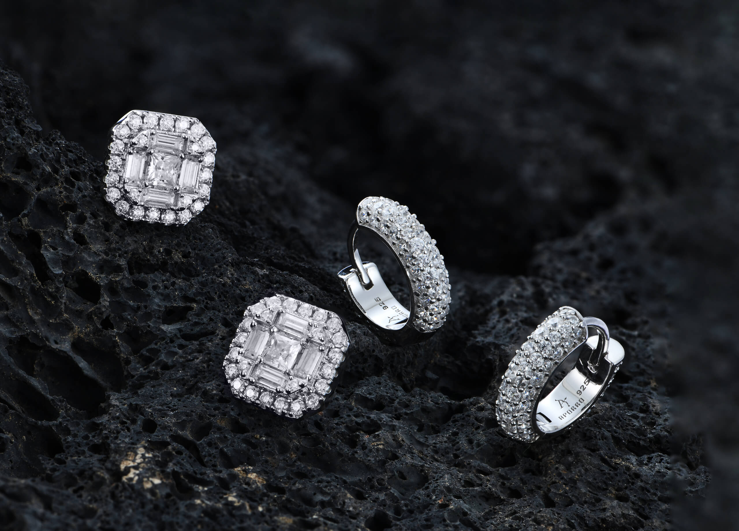 Moissanite Toi et Moi & Round Cut Stud Earring Set