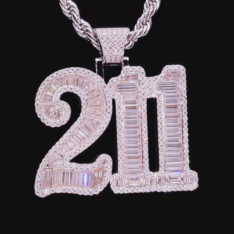 APORRO Premium Custom Iced Baguette Cut Numbers Pendant