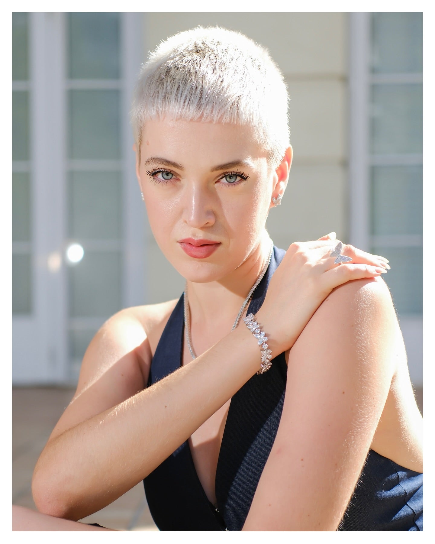 Crushed Ice Emerald Cut Tennis Bracelet - Blue Gray