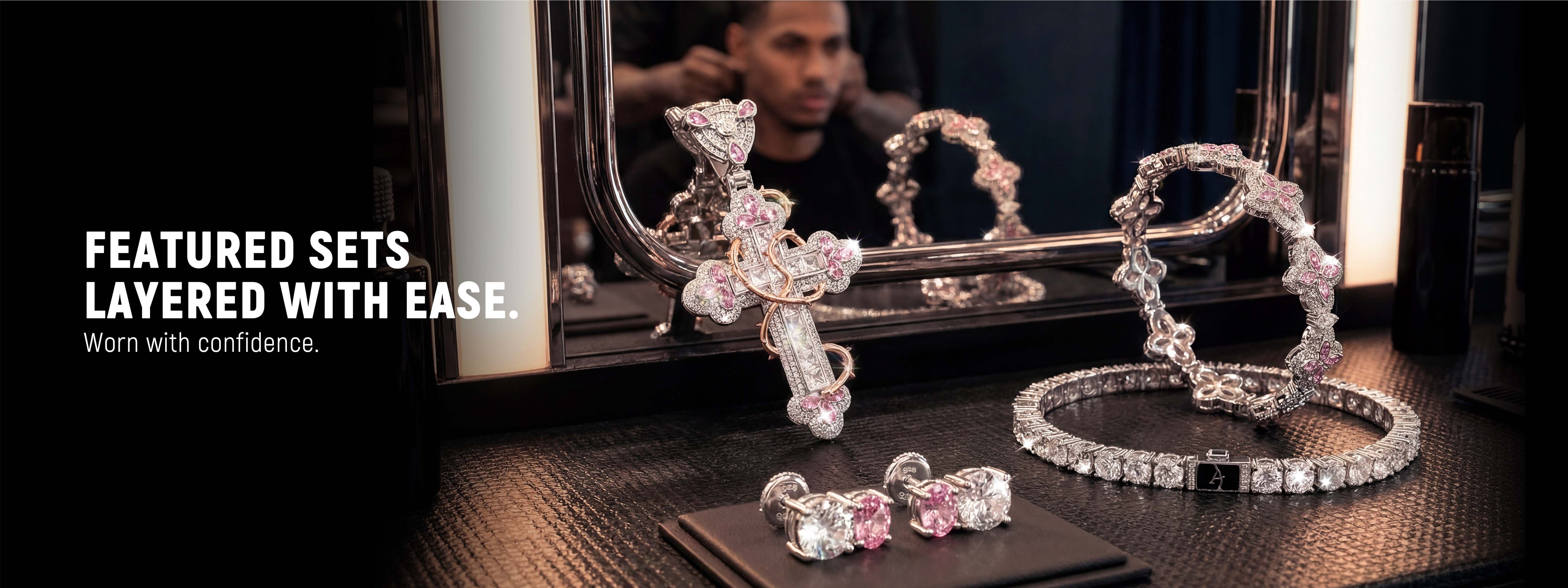 Iced Luminous Clover Bracelet & Earring Set - White Diamond