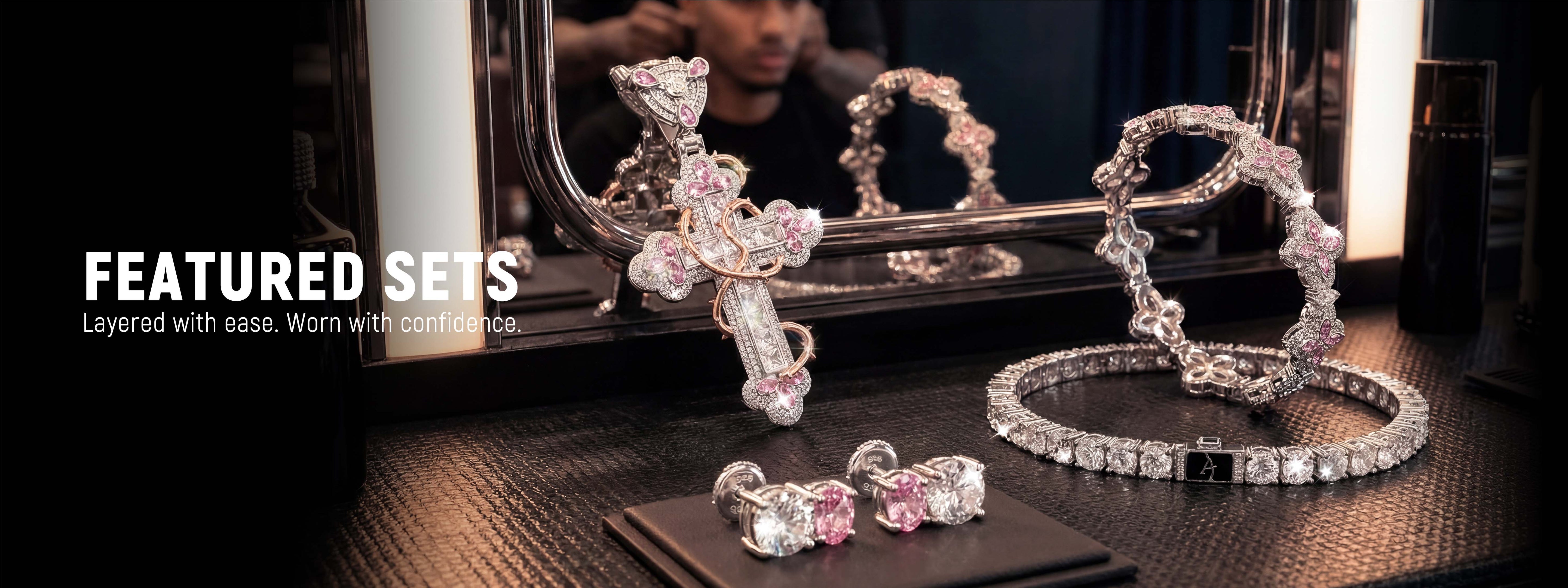 Sweet Edge Iced Chain & Earring Set