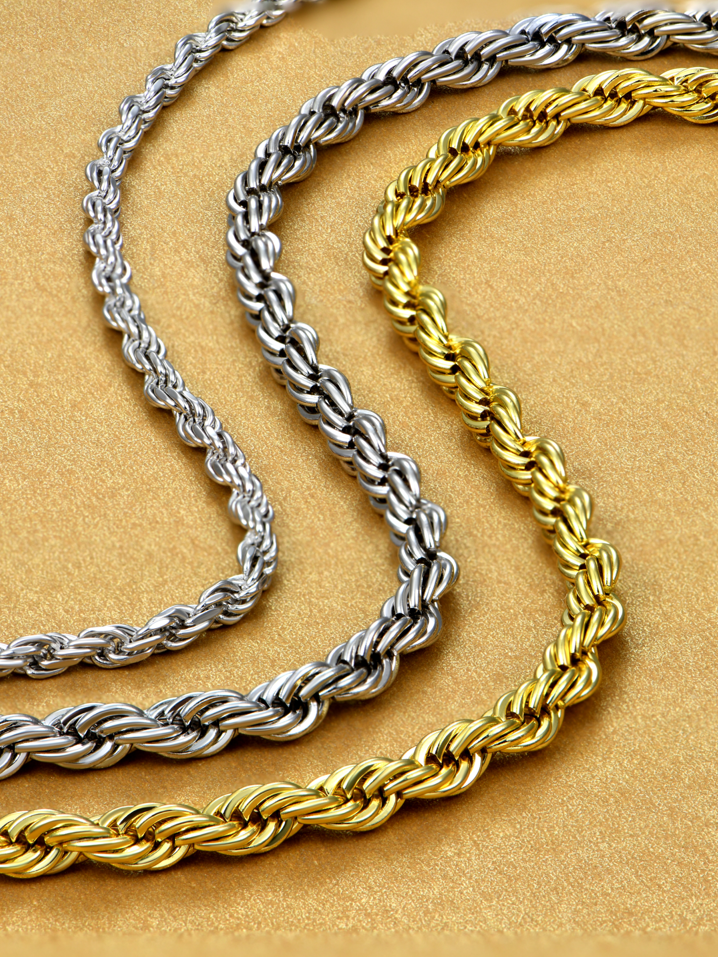 Rope + Plain Gold Prong Cuban link Chain Gift Set