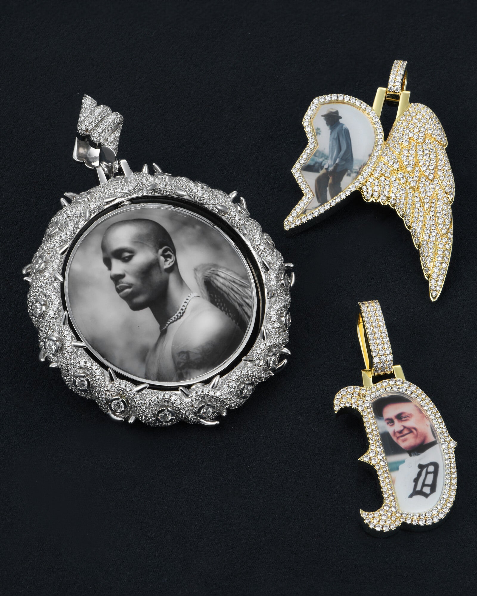 Custom Rotating Double Sided Moissanite Thorns Photo Necklace Pendant