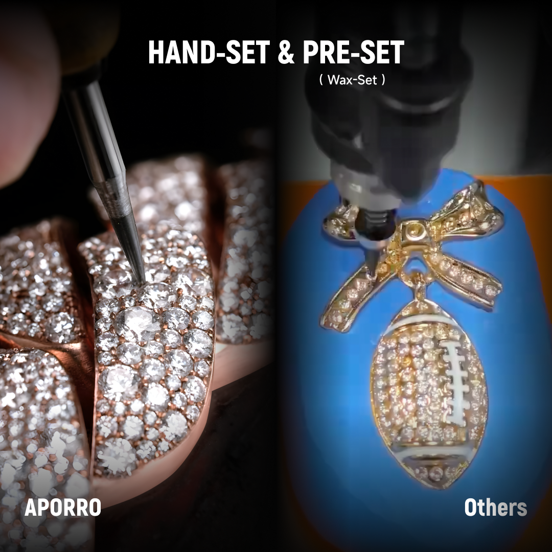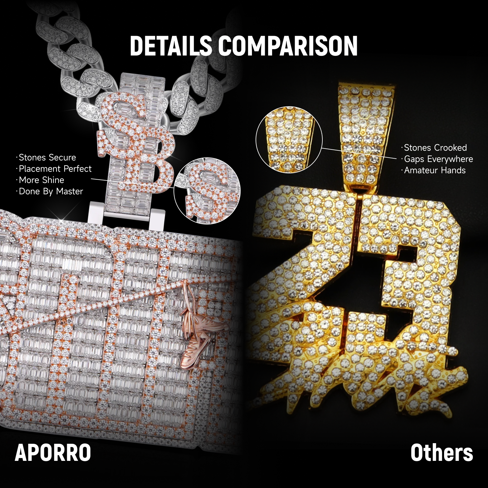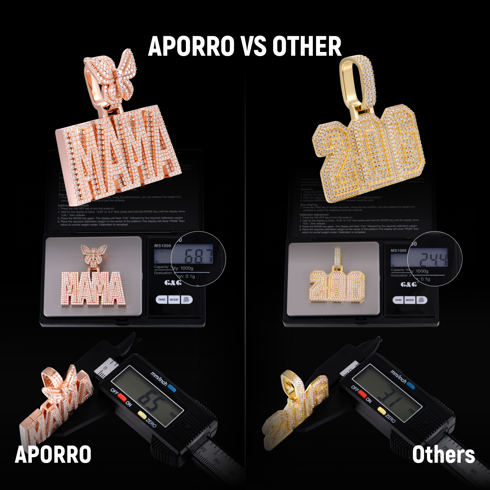 We provide various material choices, such as brass, 925 sterling silver, and real gold in 10k, 14k, and 18k. For stones, you can choose from cubic zirconia, moissanite, diamonds, or even gemstones. Whether for everyday luxury or special occasions, Aporro crafts each piece with meticulous care and precision.
