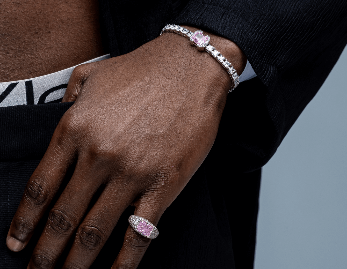 Crushed Ice Emerald Cut Drop Earring - Fancy Light Pink