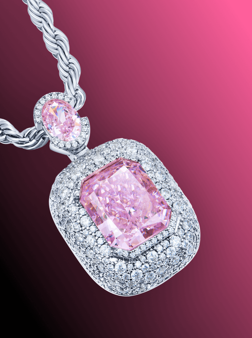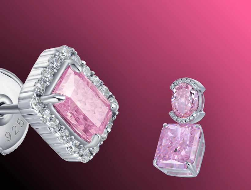 S925 Crushed Ice Emerald Cut Stud Earring - Fancy Light Pink