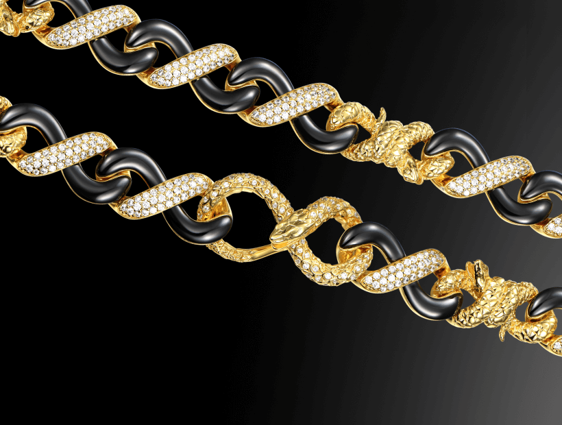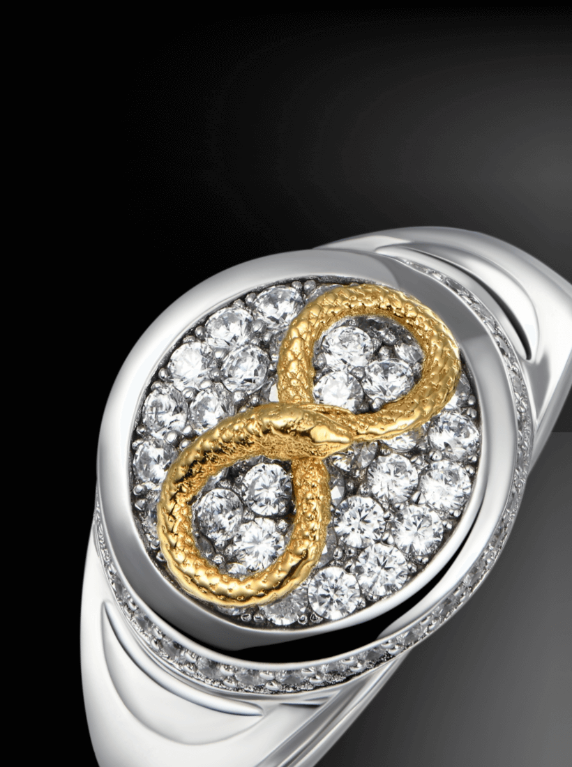 The 14-piece Infinity collection by Aporro is a nod to a symbol standing the test of time. The series of jewelry is accented with an ouroboros serpent that was molded into an infinity link and harmonized into the 14k & silver wearable art.